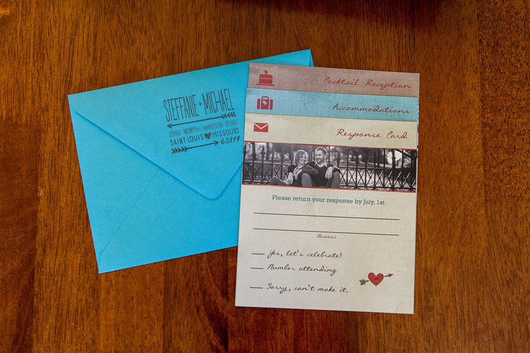 The weekend we returned from Jamaica, we had a reception in Chicago. Below is the Reception invitation that I sent to out closer to the time of the wedding. For this packet, I needed each each to be separate to the response card could be mailed back.